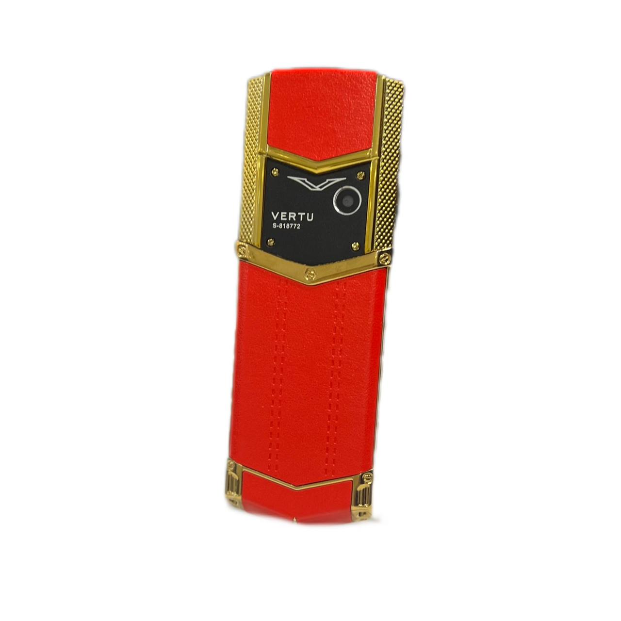 طرح ورتو سیگنچر اس مشکی قرمز با فریم طلایی دارای روکش چرم سواروسکی( SWAROVSKI) قرمز , ساپورت دو سیم کارت همزمان ,ساپورت رم تا 128 گیگابایت ,قابلیت پخش موزیک و ویدئو ,دارای دوربین 5 مگاپیکسلی , 2 سال گارانتی , ریجیستری فعال